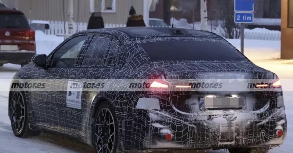 外观设计上,新车延续Vision Neue Klasse概念车的硬朗风格,同时保留宝马家族辨识度。据谍照显示,其采用更为扁宽的封闭式双肾格栅,与两侧熏黑处理的锐利LED大灯组连为一体,内部集成透镜与动态日行灯,视觉冲击力十足。下包围还带有导流槽设计,有效优化空气动力学表现,风阻系数或降至0.23以下。